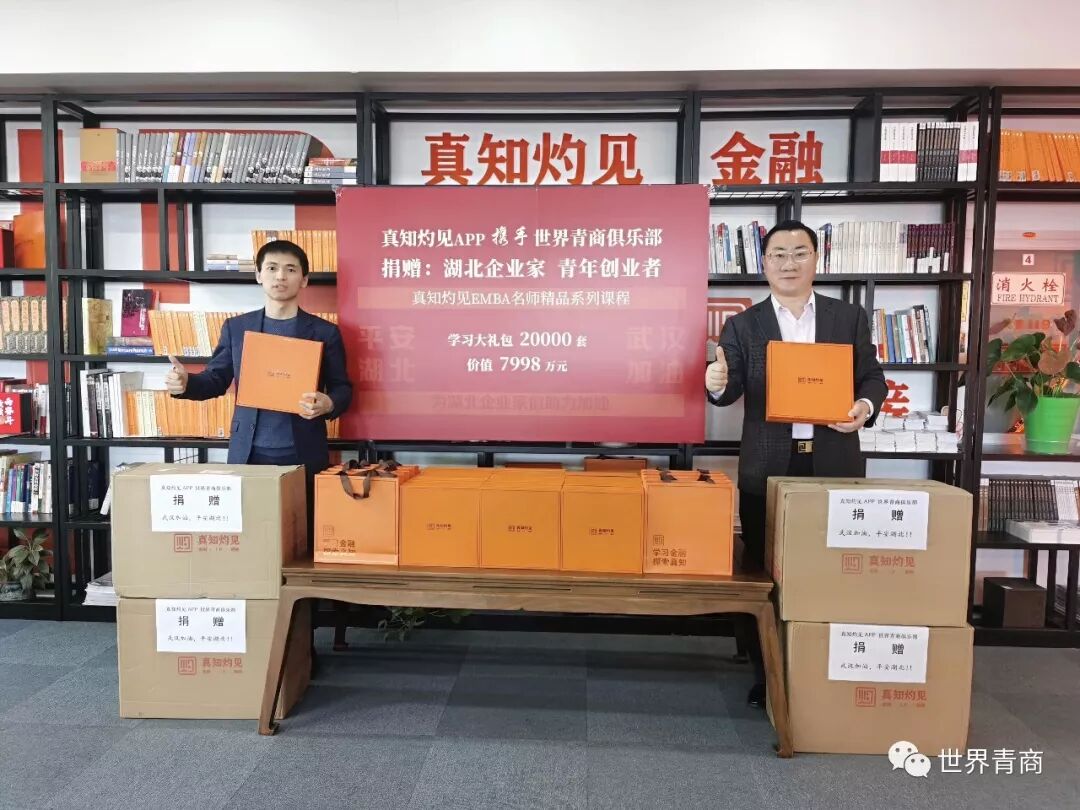 世界青商俱乐部充分利用商业资源优势,为湖北地区企业家和创业者捐赠线上价值7998万元的金融学习课程20000套,为世界青商俱乐部会员提供物资、学习等全方位服务保障。